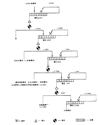 3.2 煤樣應(yīng)按本標準規(guī)定的制備系統(tǒng)(見圖2)及時制備成分析煤樣,或先制成適當粒級的煤樣。如果水分大,影響進一步破碎、縮分時,應(yīng)適當?shù)剡M行干燥。