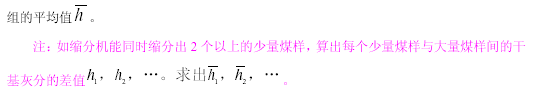 B1.1 把從縮分機縮分出來的少量煤樣和大量煤樣分別用二分器縮分,制備成分析試驗煤樣?;炈?、灰分,算出干基灰分,并求出兩者干基灰分的差值(h)。